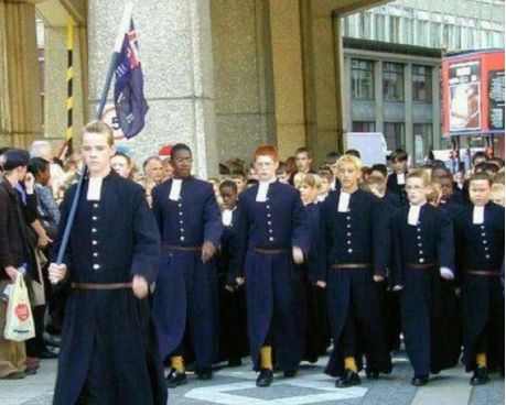 歐洲的校服仍然維持著它一直以為低調(diào)和貴族的傳統(tǒng),被譽(yù)為最正統(tǒng)的校服,沿用了多年的皇室制服款式。英國校服款式經(jīng)典、簡潔大方,中學(xué)生必須穿著正統(tǒng)西式校服,男生為正統(tǒng)西裝、正規(guī)皮鞋、需要佩戴領(lǐng)帶,女生也是統(tǒng)一西式正統(tǒng)服裝、正規(guī)女式皮鞋、必須佩戴領(lǐng)花,不論是?;?、帽徽,無一不顯示著英國人特有的風(fēng)度和氣質(zhì)。也不知是歐洲的學(xué)生更嚴(yán)肅還是校方更強(qiáng)硬,他們的態(tài)度似乎是“學(xué)生就要穿得像個學(xué)生的樣子”。他們對校服的重視程度也不輸給日本,認(rèn)為校服是培養(yǎng)學(xué)生紀(jì)律意識最直接的手段。