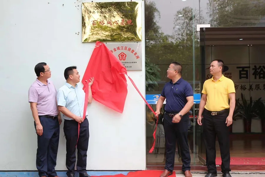 百裕集團河池分公司是河池市委市政府招商引資的服裝生產(chǎn)企業(yè),也是金城江區(qū)重點企業(yè),主營服裝生產(chǎn)加工業(yè)務(wù),公司現(xiàn)有員工149人,其中,來自貧困家庭員工8人。2020年疫情期間,已落實發(fā)放公司國家階段性減免企業(yè)職工基本養(yǎng)老、工傷、失業(yè)三項社會保險單位部分補貼13.83萬元和企業(yè)一次性防疫補貼1.2萬元。此前,公司已經(jīng)區(qū)人社部門認定為金城江區(qū)就業(yè)扶貧車間。今年的就業(yè)扶貧車間吸納貧困勞動力獎補標準已提高至2000元/人。按照自治區(qū)文件要求,對就業(yè)扶貧車間需授予牌匾。因此,公司舉行簡樸的揭牌儀式,蘭軍城局長親自為扶貧車間牌匾揭牌。