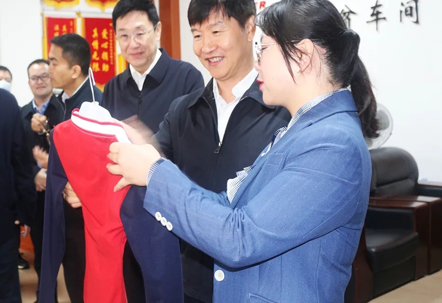 在參觀展示廳的過程中,市場總監(jiān)曾凱蘭向領導們詳細介紹了百裕校園服飾特點。環(huán)江是毛南、壯、漢、苗、瑤、水、仫佬族、侗、布依等少數民族集中地,是全國惟一的毛南族自治縣,擁有絢爛多彩的少數民族文化背景,百裕集團在服務當地學校學子的同時,充分保留民族文化特色,將文化元素融入到學生服飾當中,傳承民族文化。對于此舉,劉小明給予了認可與極大的鼓勵。