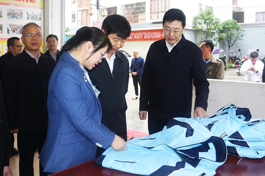 在百裕集團環(huán)江車間,劉小明詳細了解我公司在安置區(qū)設立的車間管理及產業(yè)發(fā)展情況,了解公司發(fā)展現狀、當前存在問題和下一步發(fā)展規(guī)劃等,并關心車間員工的生產和收入問題。