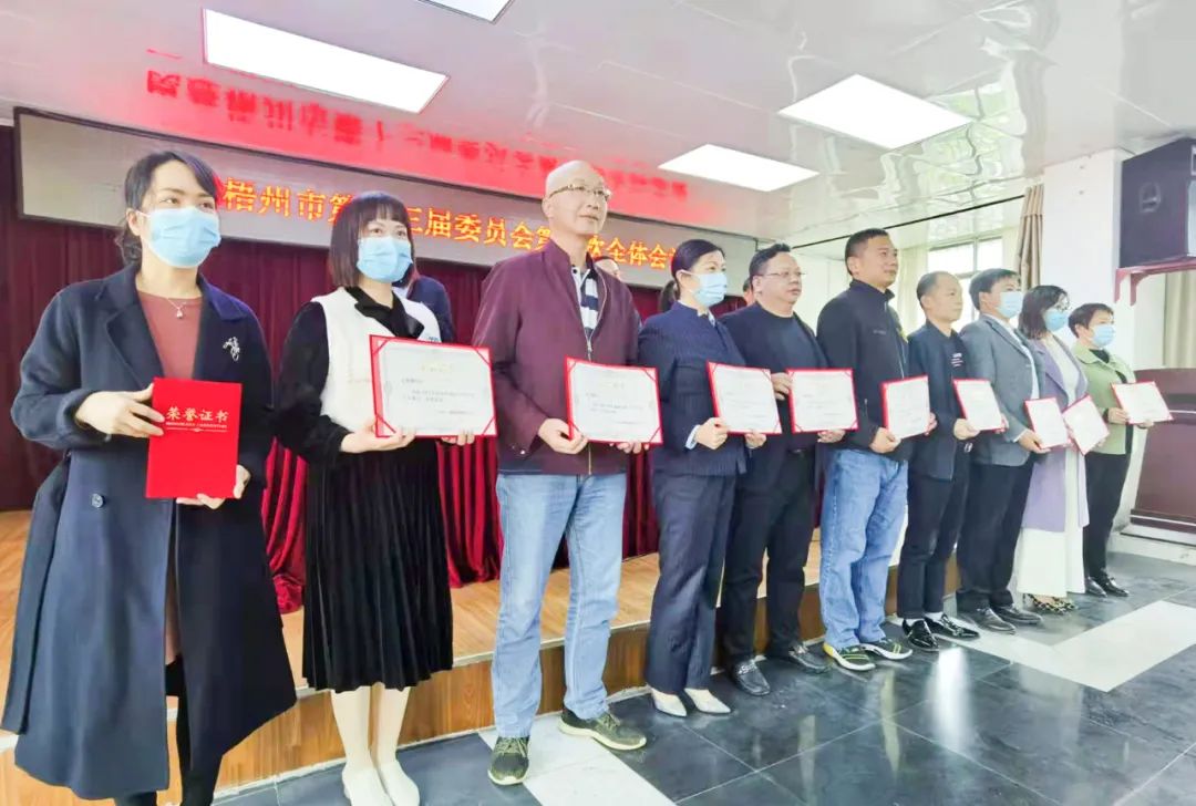 民建梧州市第十三屆委員會委員出席會議,受表彰的先進(jìn)基層組織代表、優(yōu)秀會員、新會員及機(jī)關(guān)專干列席會議。