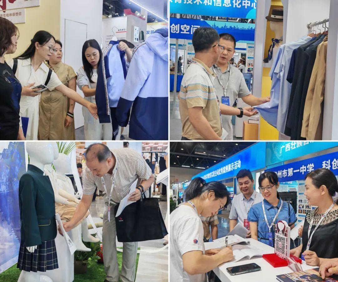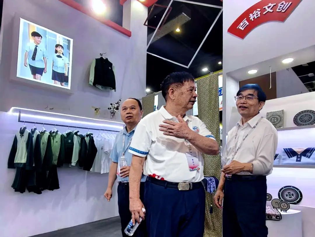 百裕集團(tuán)展位備受矚目,教育部關(guān)心下一代工作委員會(huì)常務(wù)副主任、中國教育裝備行業(yè)協(xié)會(huì)專家委員會(huì)主任王富,廣西貿(mào)促會(huì)黨組成員、副會(huì)長、廣西國際商會(huì)副會(huì)長劉樹義,自治區(qū)教育廳原二級(jí)巡視員、廣西民族教育發(fā)展基金會(huì)副理事長陳標(biāo)智,廣西教育技術(shù)和信息化中心主任肖榮亮,廣西教育裝備行業(yè)協(xié)會(huì)創(chuàng)會(huì)會(huì)長陳鐵華,廣西教育裝備行業(yè)協(xié)會(huì)代會(huì)長貴尚明等領(lǐng)導(dǎo)嘉賓蒞臨展位指導(dǎo)。他們對(duì)百裕集團(tuán)將民族文化特色與現(xiàn)代校服設(shè)計(jì)理念相融合的創(chuàng)意實(shí)踐表示贊賞,充分認(rèn)可百裕集團(tuán)在推動(dòng)教育裝備高質(zhì)量發(fā)展所作出的積極貢獻(xiàn),領(lǐng)導(dǎo)及嘉賓暖心的關(guān)懷與指導(dǎo),是百裕集團(tuán)在未來的發(fā)展道路上的強(qiáng)勁動(dòng)力。