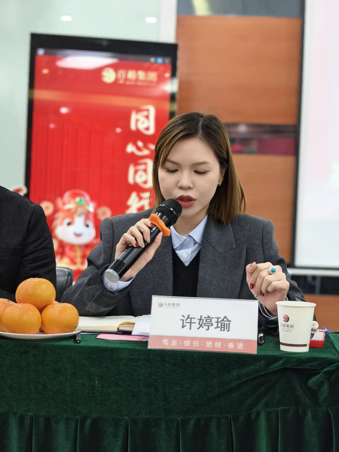 會(huì)議伊始,全體人員共同觀看2025集團(tuán)大事記回顧視頻,重溫一年來的奮斗足跡與輝煌時(shí)刻;隨后齊聲朗讀《百裕同心》,鏗鏘有力的字句彰顯著團(tuán)隊(duì)的凝聚力與向心力。