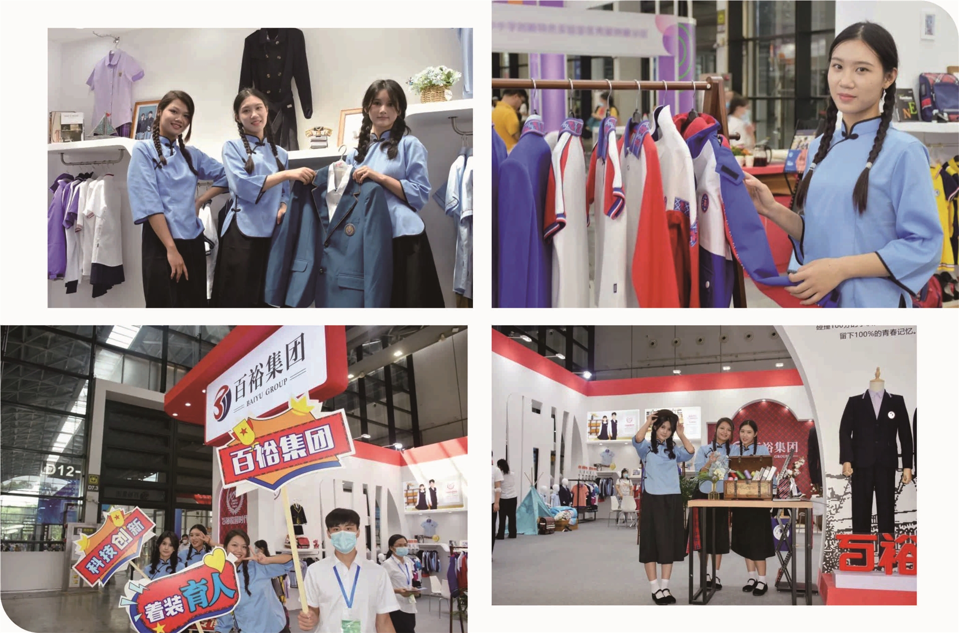 百裕集團在本次展會亮相的“百裕校園時代”中小學校園服飾、“愛樂學”園服、“喬派恩”職業(yè)裝系列,向參觀者展示了校園服飾與民族文化相結合的獨特魅力,不斷吸引了眾多參觀者駐足與關注。