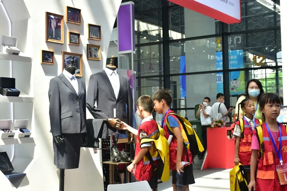 服飾展區(qū)吸引了小記者團的關注與了解,對服裝的制作、面料、配飾、洗滌護理等知識充滿好奇心并爭相提問,在百裕集團員工現(xiàn)場耐心解說下,小記者們收獲滿滿!