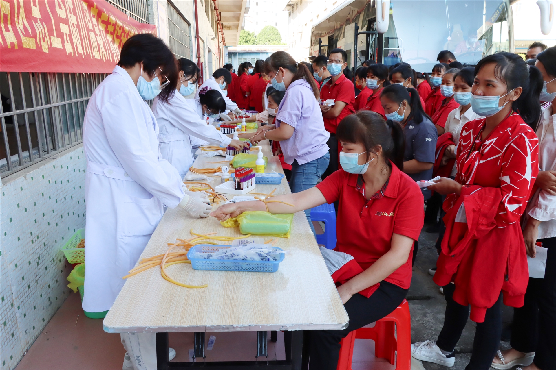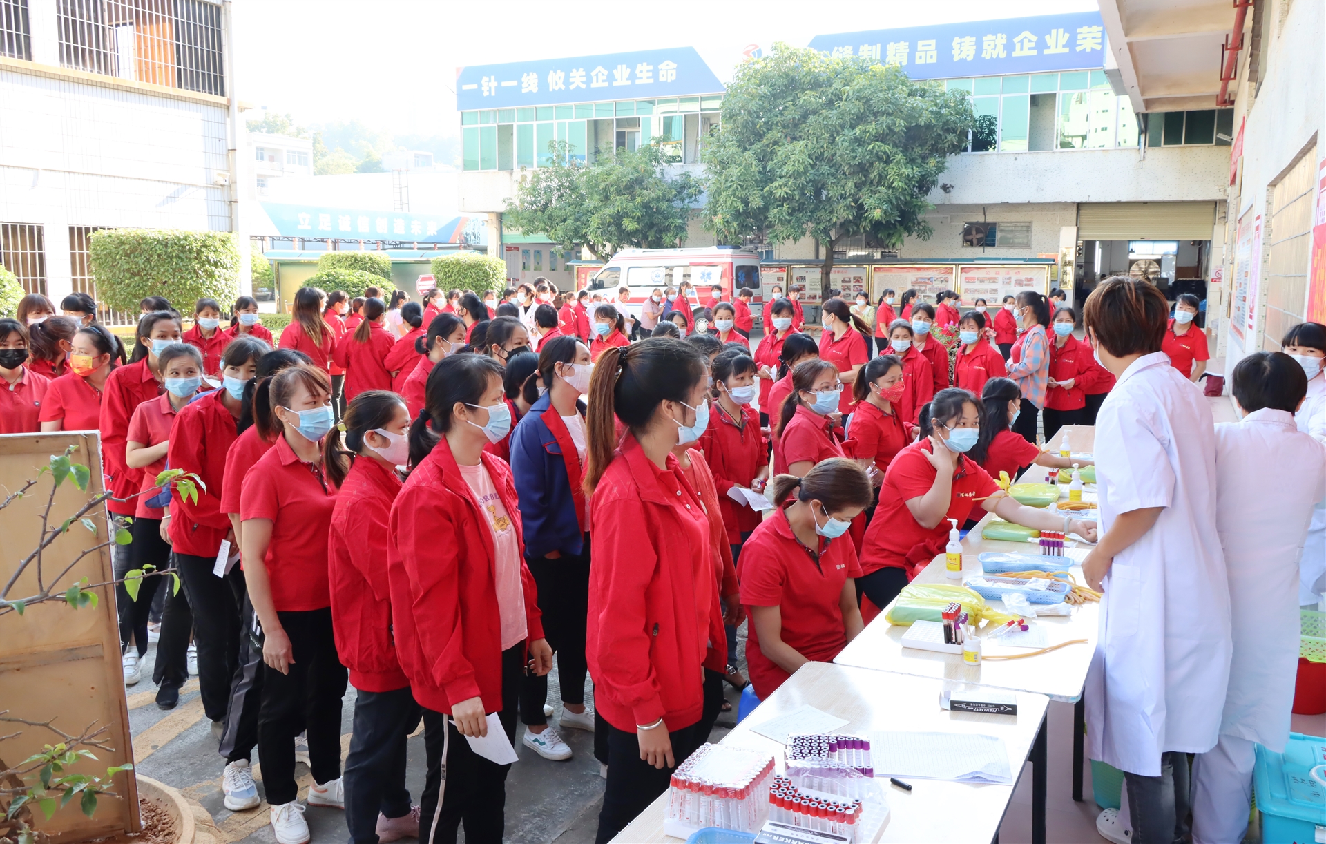 本次送健康體檢服務(wù),由廣西壯族自治區(qū)總工會(huì)陸川溫泉療養(yǎng)院的12名醫(yī)護(hù)人員上門開展,10月14日一早,體檢醫(yī)護(hù)車開進(jìn)了百裕工業(yè)園,為百裕200多名一線產(chǎn)業(yè)工人提供:血液化驗(yàn)、B超、肝/腎功能、心電圖、DR胸部影像、癌癥篩查等12項(xiàng)體檢內(nèi)容。