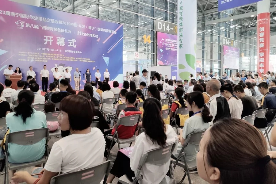 2019年7月19日,由南寧市人民政府、中國國際貿(mào)易促進委員會廣西分會主辦,由廣西教育裝備行業(yè)協(xié)會、南寧市教育局、南寧市人力資源和社會保障局、南寧市文化廣電和旅游局等承辦,由南寧市人才服務管理辦公室協(xié)辦的“第23屆南寧國際學生用品交易會暨2019中國·東盟(南寧)國際教育展覽會、第八屆廣西教育裝備展示會”,在南寧國際會展中心正式開幕。展示會從7月19日--21日共三天時間,來自全國各地教育裝備企業(yè)齊聚南寧,共襄盛會。