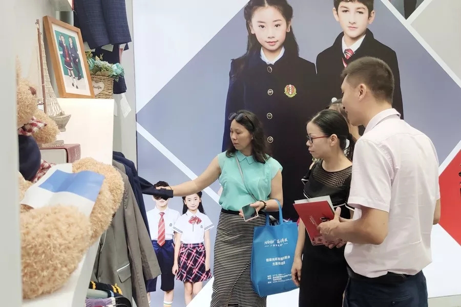 此次展會,百裕校園時代帶來的幼兒園、中小學禮服、運動服等一系列校園服飾產(chǎn)品案例,可針對不同學校、地區(qū)需求給出最合理的方案?,F(xiàn)場大屏幕上滾動播放集團介紹、品牌建設等視頻,以及現(xiàn)場產(chǎn)品實物的展示,吸引了眾多觀眾的眼球,并與銷售人員面對面溝通,展會現(xiàn)場氣氛熱烈。