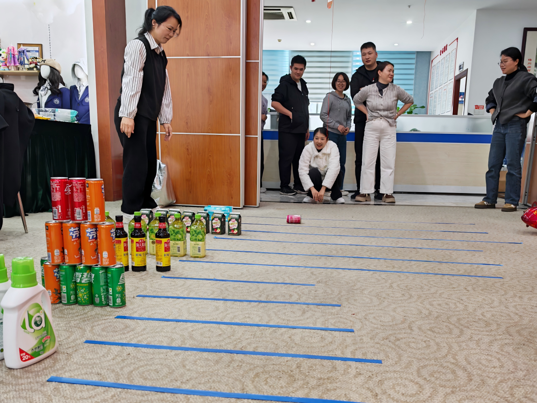除了智力的角逐,現(xiàn)場還設(shè)置了游戲區(qū)。精美禮品整齊排列,員工們瞄準(zhǔn)自己心儀的物件進行滾落投擲。大家不僅收獲了驚喜小禮物,更在歡聲笑語中釋放了工作壓力。