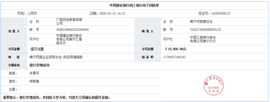 (向南寧市慈善總會(huì)捐贈(zèng)壹萬(wàn)元)