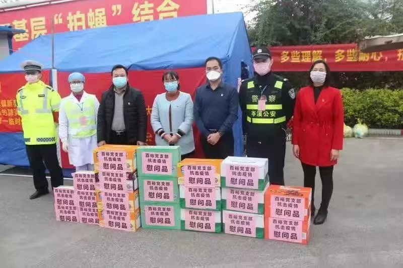 2月11日下午,在戰(zhàn)“疫”關(guān)鍵時(shí)期,百裕實(shí)業(yè)黨支部黨員干部?jī)?nèi)部募捐所得經(jīng)費(fèi)共計(jì)2270元用于采購(gòu)物資,前往岑溪市探花和古塘高速路口一線執(zhí)勤點(diǎn),為戰(zhàn)“疫”執(zhí)勤的交警和醫(yī)務(wù)人員送去一批慰問物資,希望能為抗擊疫情貢獻(xiàn)一份力量。