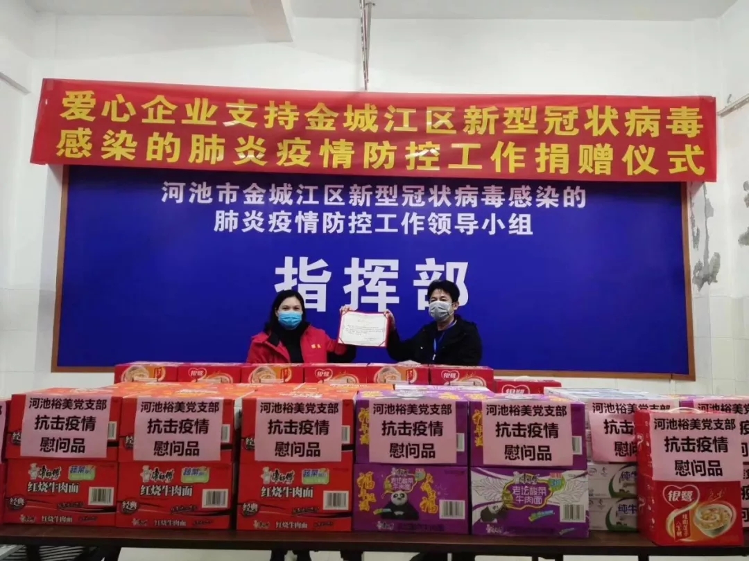 2月13日,百裕集團(tuán)河池分公司為河池市金城江區(qū)新型冠狀病毒感染的肺炎疫情防控工作小組指揮部,送去抗擊疫情慰問品。